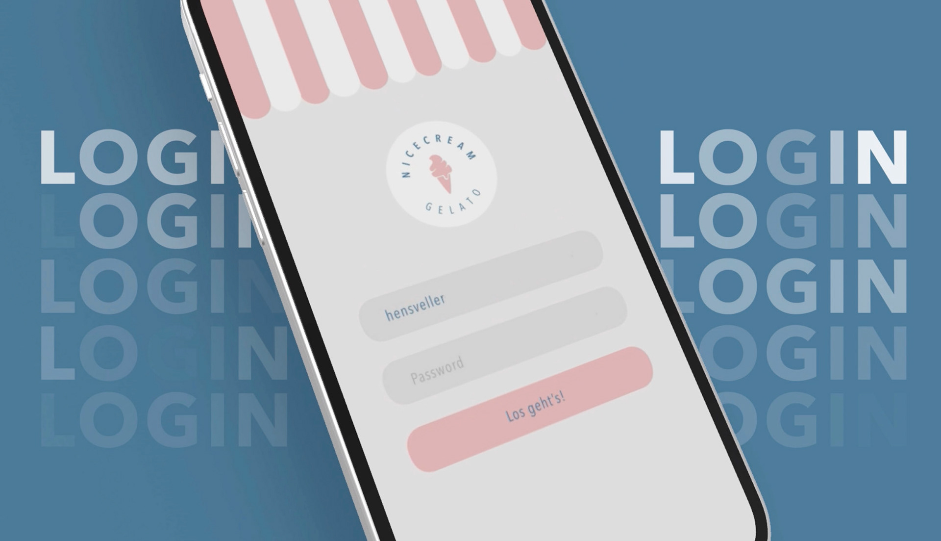 Branding einer fiktiven Eismarke „NICECREAM“. In der App